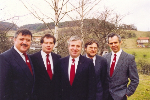 Die damaligen Vorstandsmitglieder (von links): Walter Felbek (Chorleiter), Wolfgang Rupp (Rechner), Anton Sattler (Schriftführer), Fritz Opel (1. Vorsitzender), Harald Scherer (2. Vorsitzender) | ||||||||||||||||||||||||||||||||||||||||||||||||||||||||||||||||||||||||||||