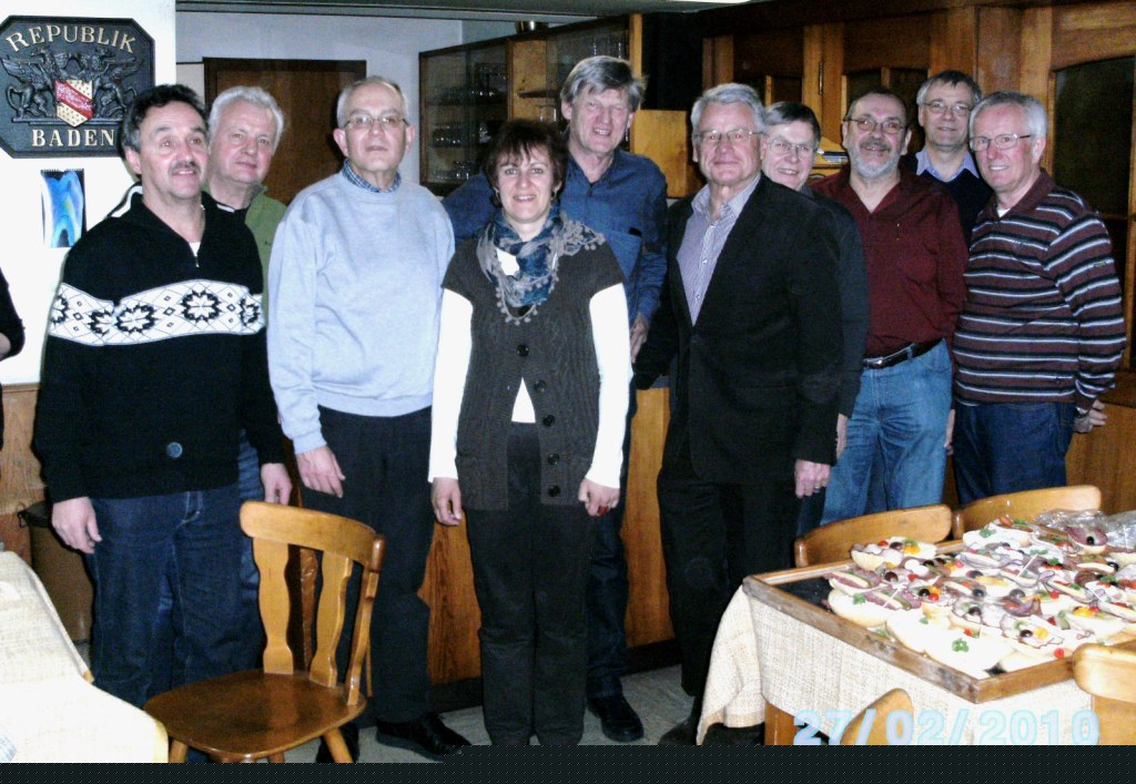 Unsere Vorstandsmitglieder (von links) im Jahr 2010: Ulrich Rotzinger (Beisitzer), Meinrad Schäfer (Beisitzer), Wolfgang Rupp (Rechner), Andrea Bächle (Chorleiterin), Fritz Opel (früherer Vorstand), Wolfgang Schulz (Schriftführer), Walter Felbek (stellv. Vorsitzender), Anton Sattler (Vorsitzender), Harald Scherer (stellv. Vorsitzender), Anton Gerteis (Beisitzer) | ||||||||||||||||||||||||||||||||||||||||||||||||||||||||||||||||||||||||||||